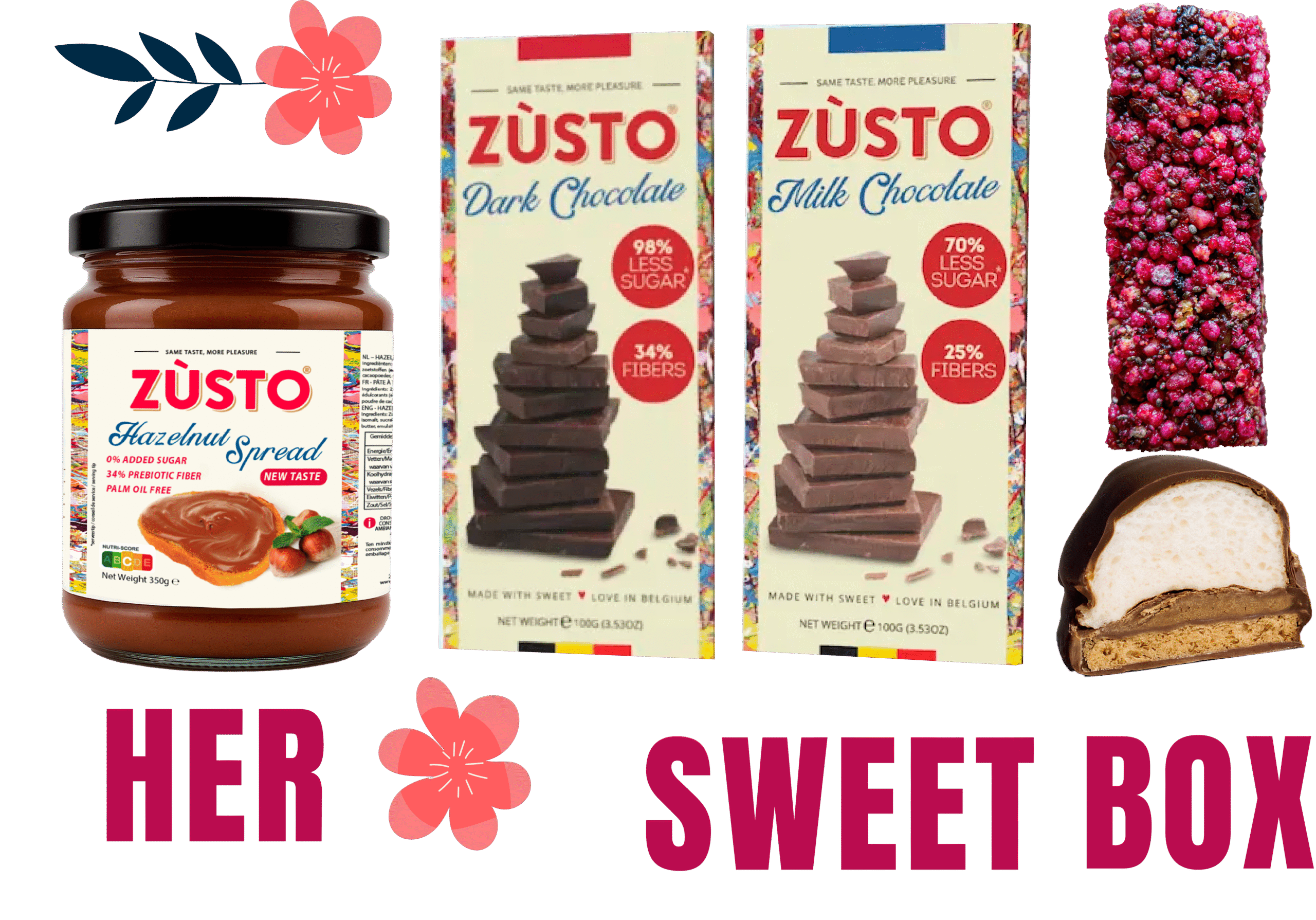 Cette boîte spéciale "Her Sweet Box" rend hommage à toutes les femmes incroyables qui inspirent, encouragent, guident et brillent chaque jour. Soigneusement composée des produits préférés de Zùsto, elle est le moyen idéal pour dire merci, je t'apprécie ou tu le mérites.