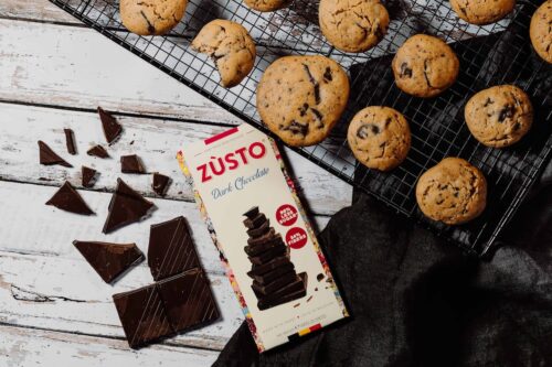 - Contient pas moins de 8% de chocolat noir Zùsto®.